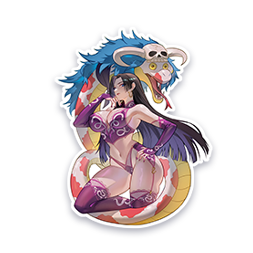 This is a holographic vinyl sticker featuring the Snake Charmer!
